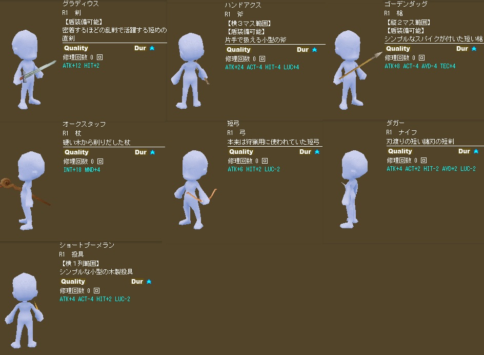一部、CRI型やHIT型が変更されていたり、盾からマイナスステータスがなくなっていたり等細かい変更点はある様子。