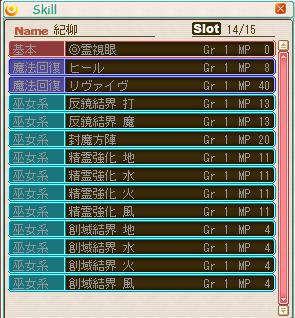 ヒール1、リヴァイブ、封魔方陣、反射、祈り、聖域などのスキル中心で、今回攻撃系はいっさいなし。