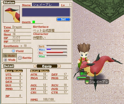 これを特殊合成というのですが、この時点では外見がレアなもの(白馬やグリフォン、黄色セプテンなどなど)になるだけで、中身やLVは合成元のモンスター2匹の能力の平均値のようになってしまいます。