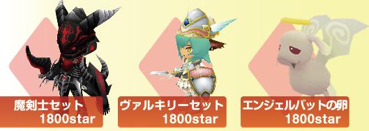 魔剣士セット、ヴァルキリーセット、エンジェルバットの3種。