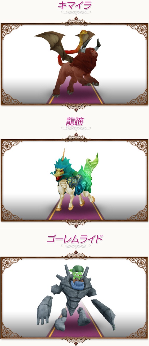 上からグリフォン、神馬、ゴーレムの使い回しペットと