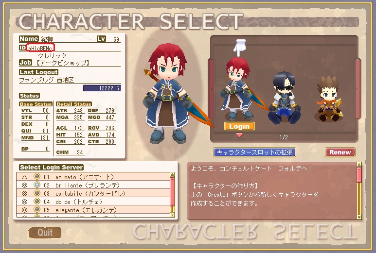 自身のキャラクターIDは、ログイン画面の左上に表示されています。